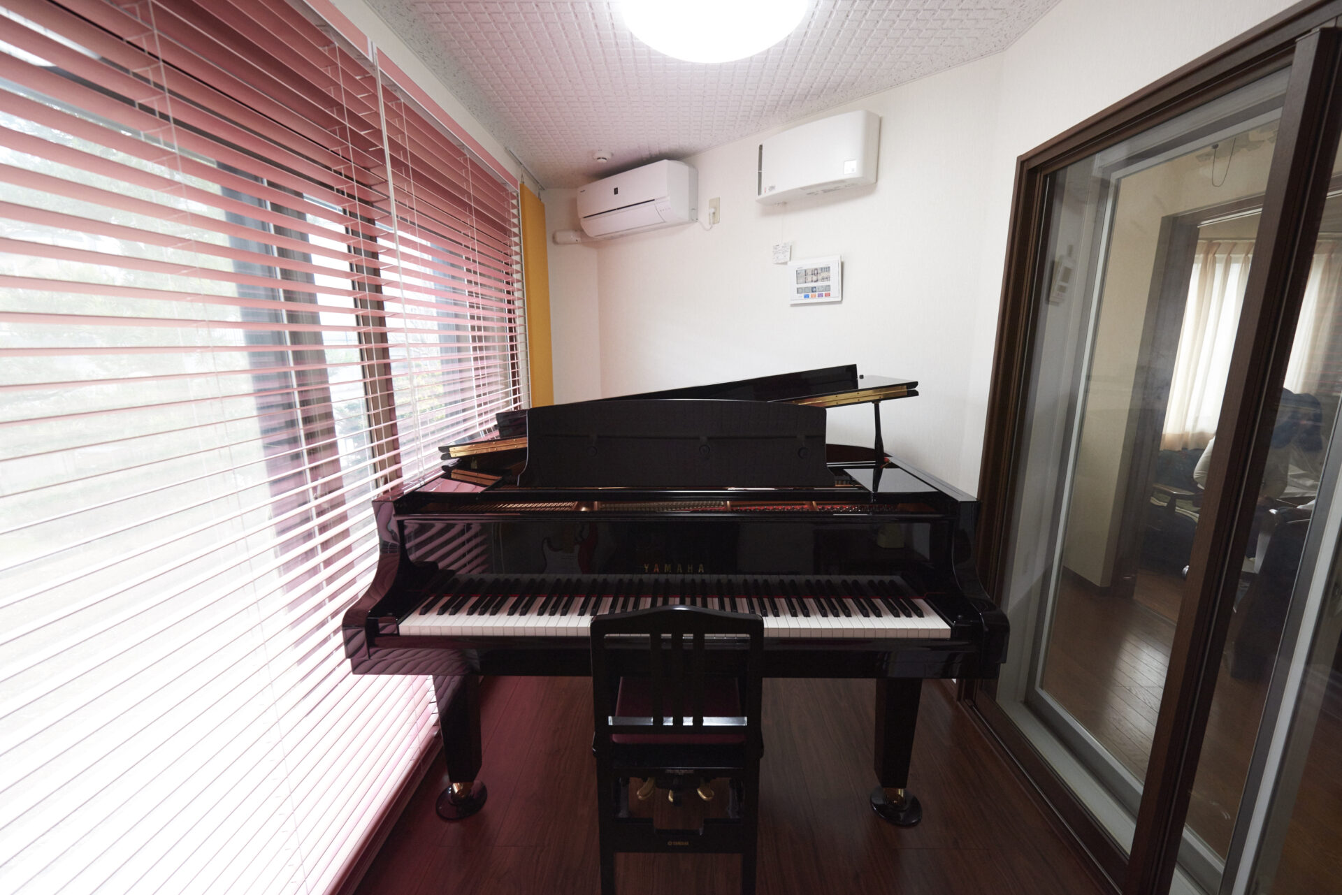 ご家族全員がピアノを演奏されるN様ご一家。今回は、リビングとの一体感を重視したサッシ仕様の防音室をご提案しました。